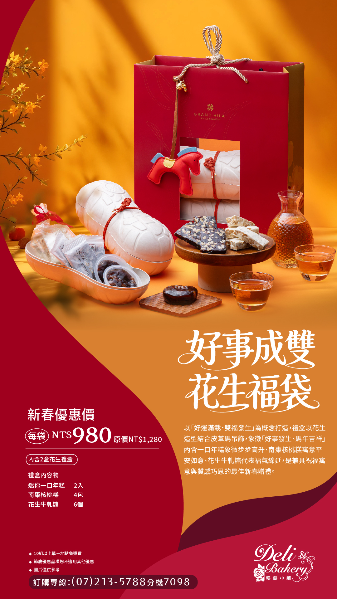 點我觀看漢來優惠活動 - 《糕餅小舖》好事成雙 花生福袋:2026新春限定【好事成雙 花生福袋】讓您甜在嘴裡、好運跟著來,把祝福一次打包帶回家!