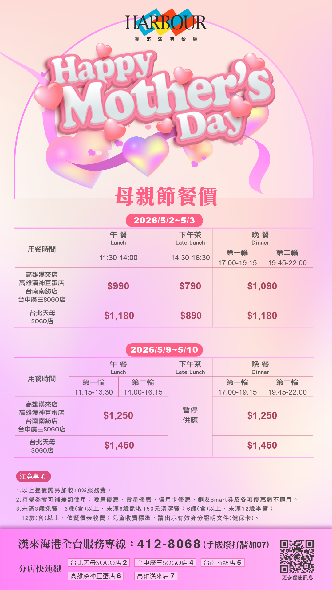 【母親節訂位須知】