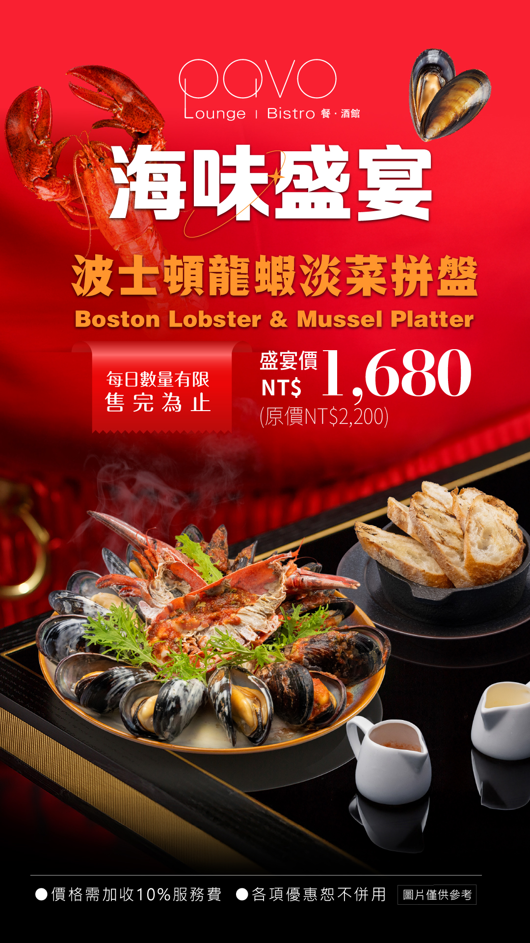 漢來優惠活動 - 《PAVO》海味盛宴-波士頓龍蝦淡菜拼盤:鮮甜海味的極致享味,一盤滿足饕客想像!