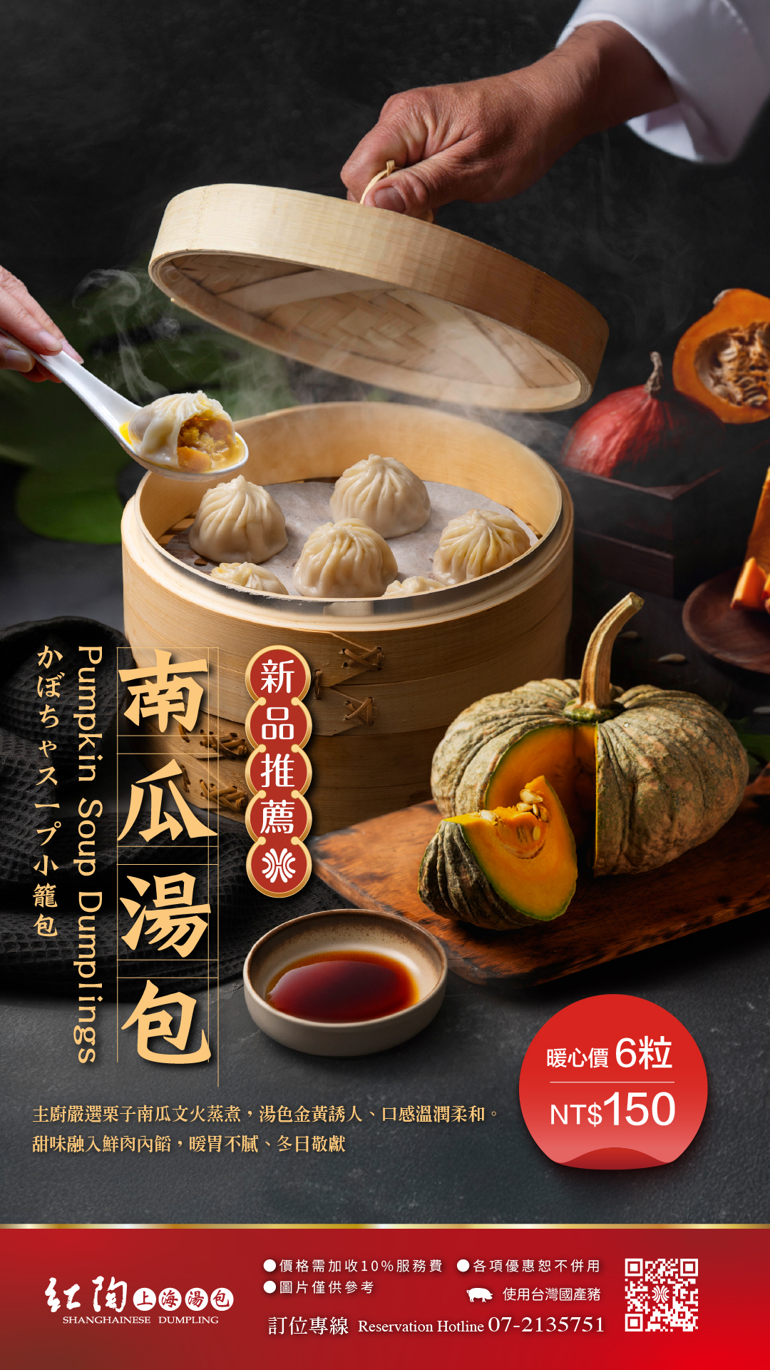 點我觀看漢來優惠活動 - 《紅陶上海湯包》南瓜湯包:秋冬期間限定推出,金黃溫潤的鮮甜暖味