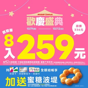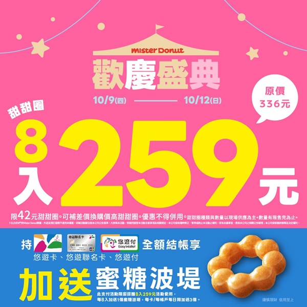 若持悠遊付/卡結帳8入259元甜甜圈優惠,