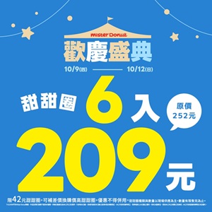 推6入或8入甜甜圈優惠,可享209或259元的甜甜價,
