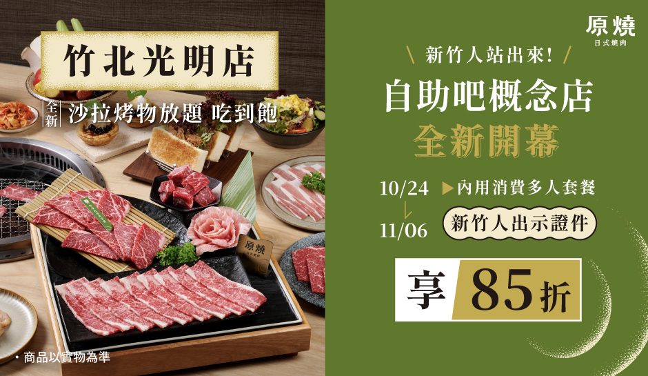 原燒優惠活動:竹北光明開幕慶|新竹人享85折優惠