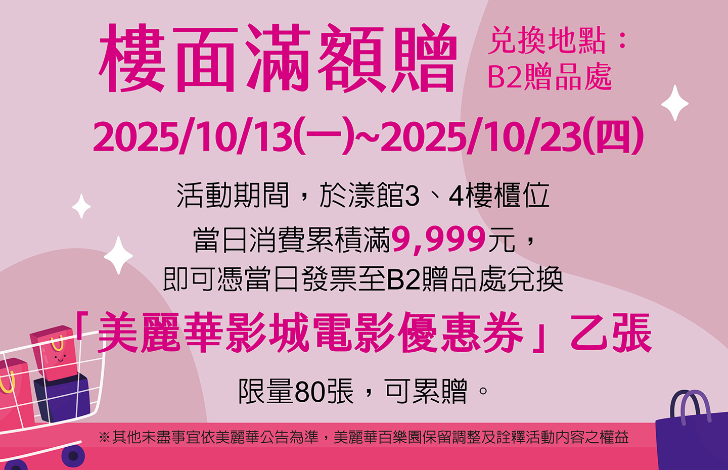 美麗華百樂園最新消息 - 漾館L3、L4 樓面滿額贈