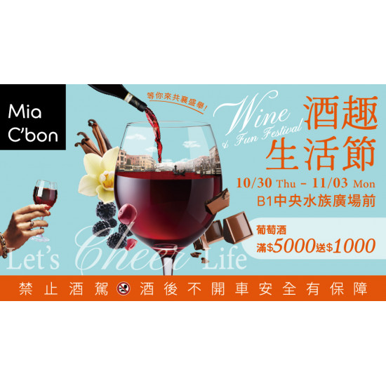 點我觀看大葉高島屋優惠活動 - MiaC’bon酒趣生活節10/30(四)~11/3(一)品牌活動B1F中央水族廣場