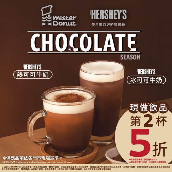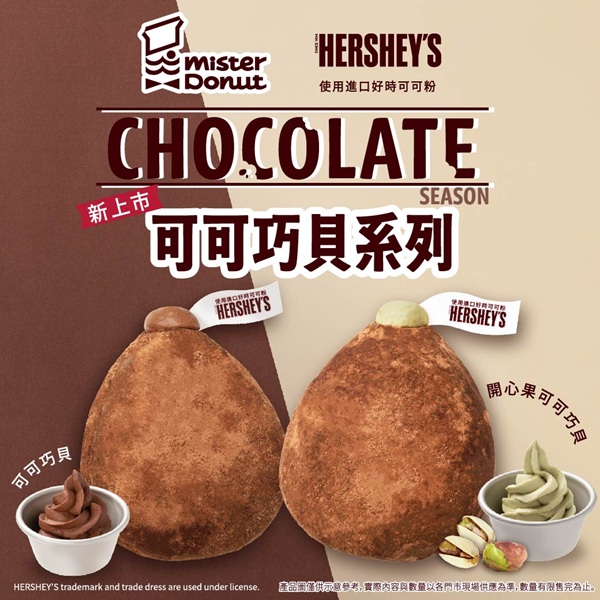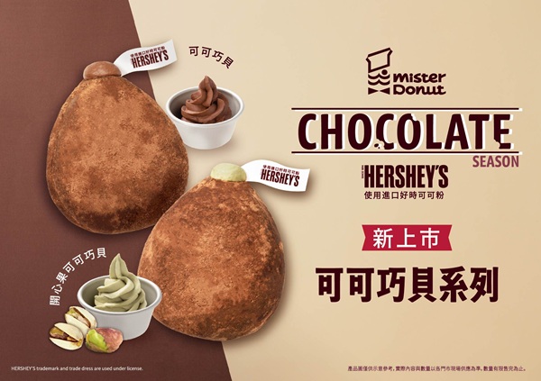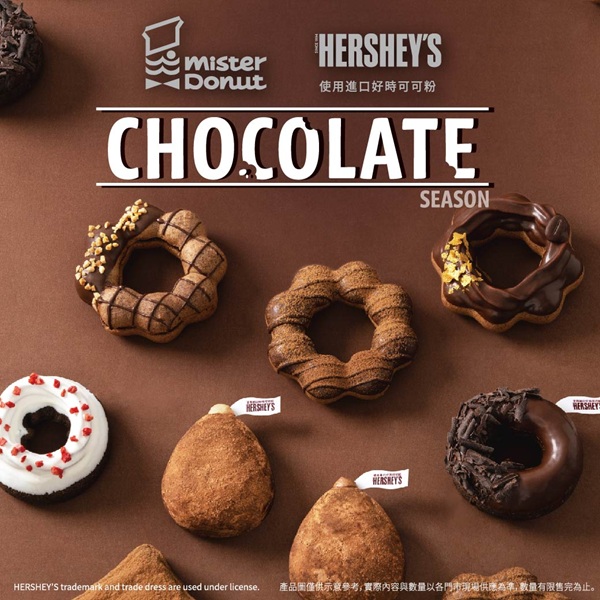 今年冬季 Mister Donut 攜手美國百年經典巧克力品牌「HERSHEY'S 好時」