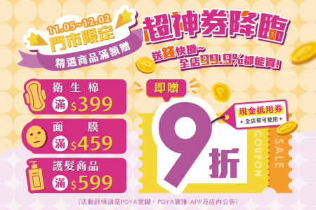 POYA寶雅 - 超神券降臨-精選商品滿額贈現金抵用券