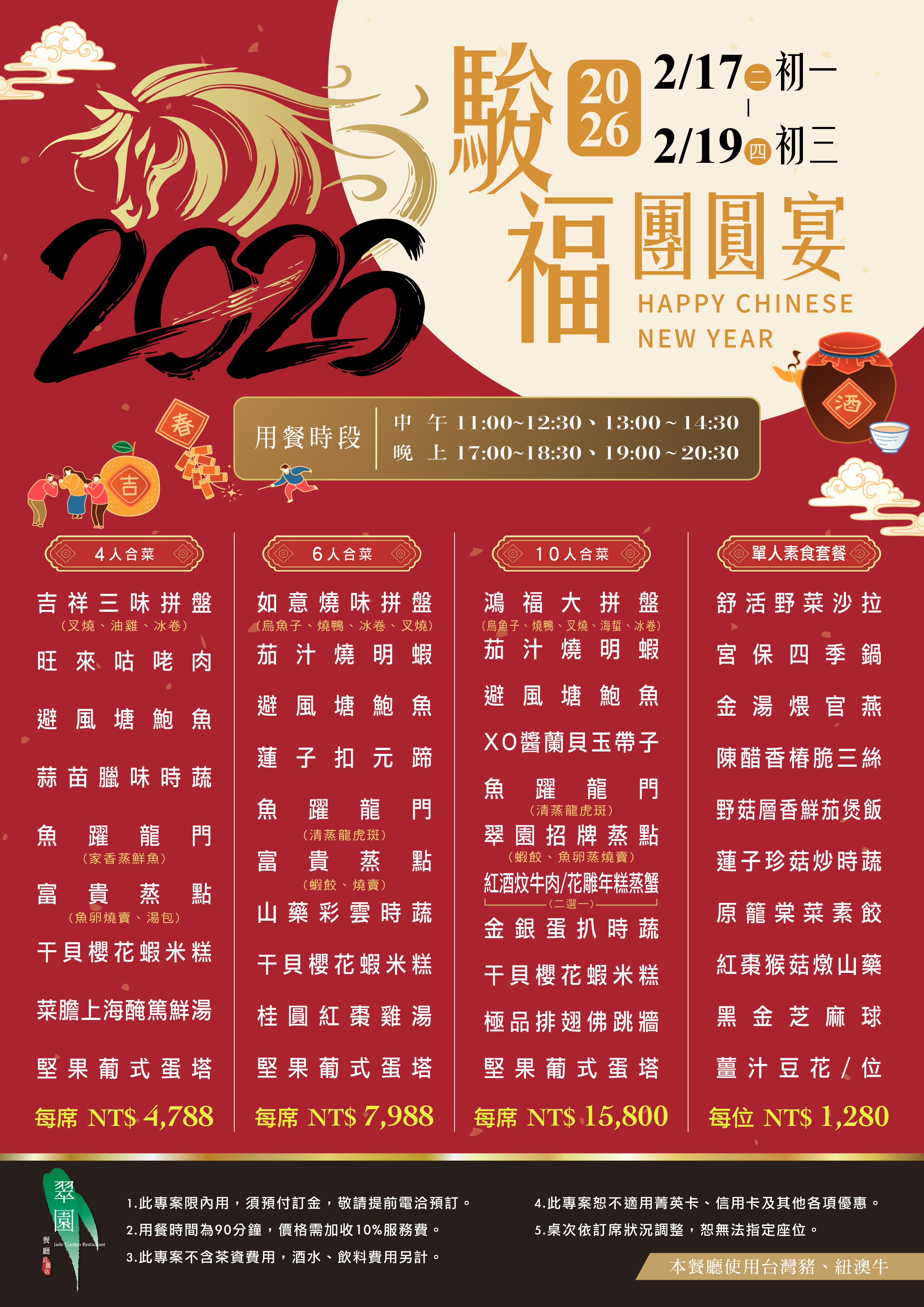 團圓宴供應時間:2025/2/17初一(二)~2/22初六(日)