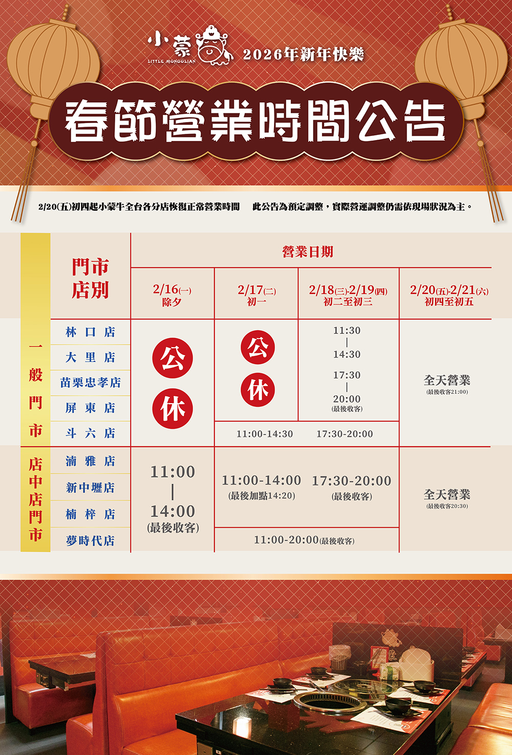 小蒙牛頂級麻辣養生鍋優惠活動 - ?小蒙牛《2026馬年春節營業時間》?