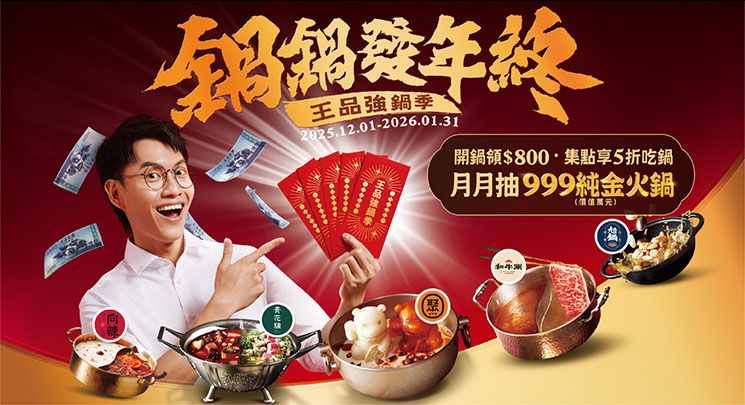 王品強鍋季 鍋鍋發年終再抽999純金火鍋