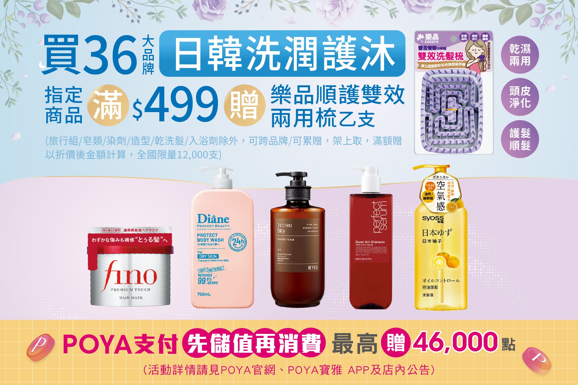 POYA寶雅 - 36大品牌日韓洗潤護沐浴商品單筆滿$499,贈樂品順護雙效兩用梳 乙隻