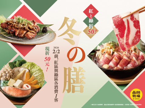 1. 優惠期間:2025/12/9~2026/2/2 (不限平假日),逾期失效。