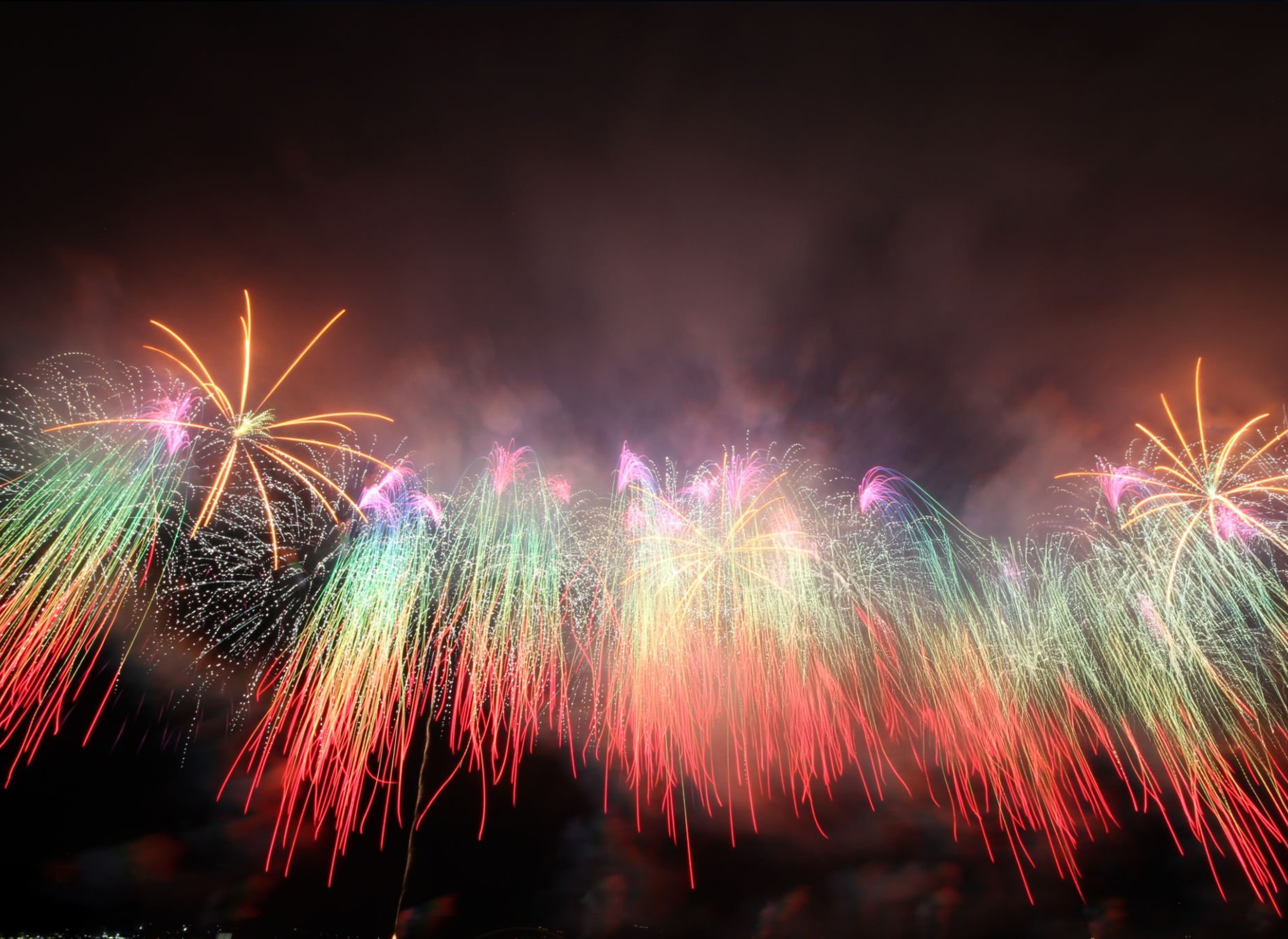 而這次跨年煙火的重頭戲便是第三幕《乘風飛揚熾熱願望》,將在空中施放多種少見煙火 ! 可見三層顏色的八重蕊菊花,絢麗的五彩瀑布,金黃色的錦冠瀑布,飛珠遊星煙火等,精彩可期。