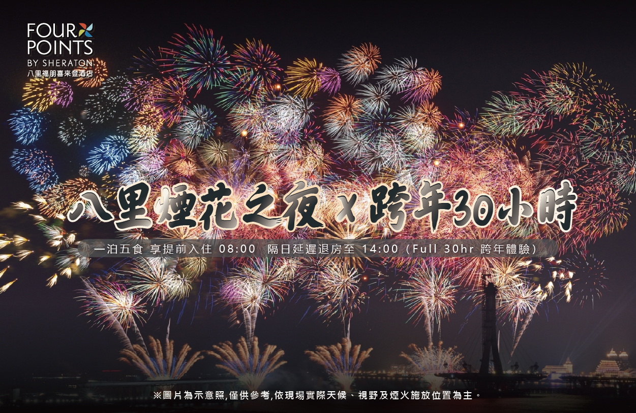 新北八里福朋喜來登酒亦店推出跨年住房專案,含雙人住宿一晚、自助早餐、迎賓水果籃、氣泡酒、Pool 派對、Pool Bar 紅酒,一泊五食優惠價 38,888 元。