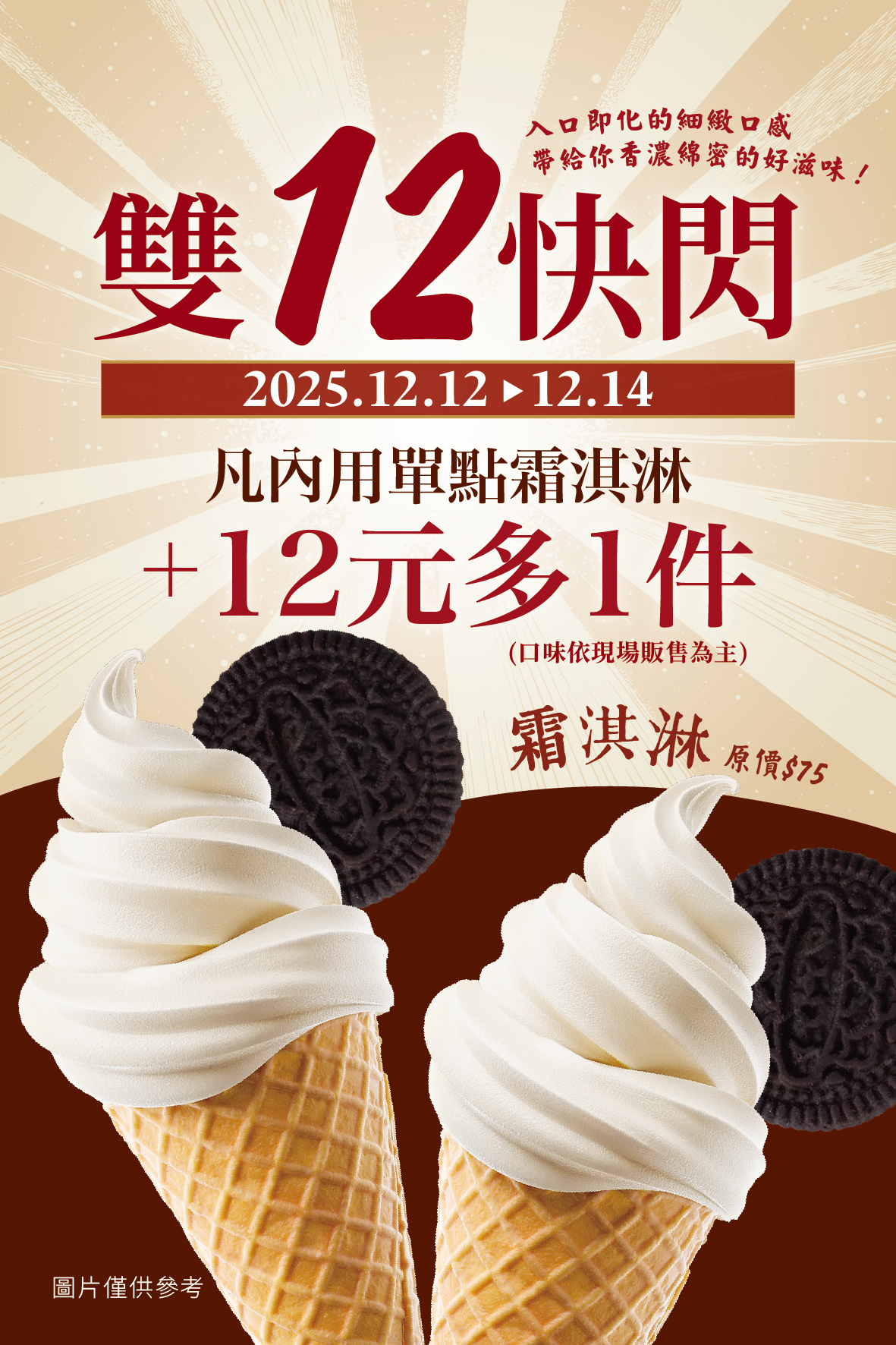 ▪內用單點霜淇淋享+12元多1件(口味依現場販售為準)