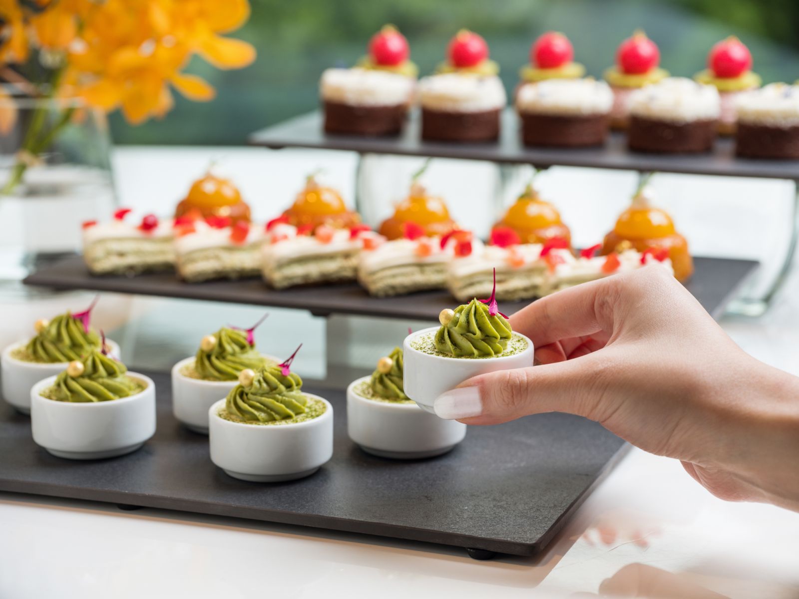 而台北文華東方酒店向來令人津津樂道的精品級手工甜點亦是文華Café自助餐檯上必嚐品項,由西點廚藝團隊精心打造,包括:橙花起司蛋糕、芝麻奶霜柚香芒果塔、檸檬茶洋梨慕斯等,以及週末限定人氣指數居高不下的阿拉斯加蛋糕,優雅吸睛的外形、精緻細膩的口感,每款都洋溢著令人驚喜的繽紛滋味!