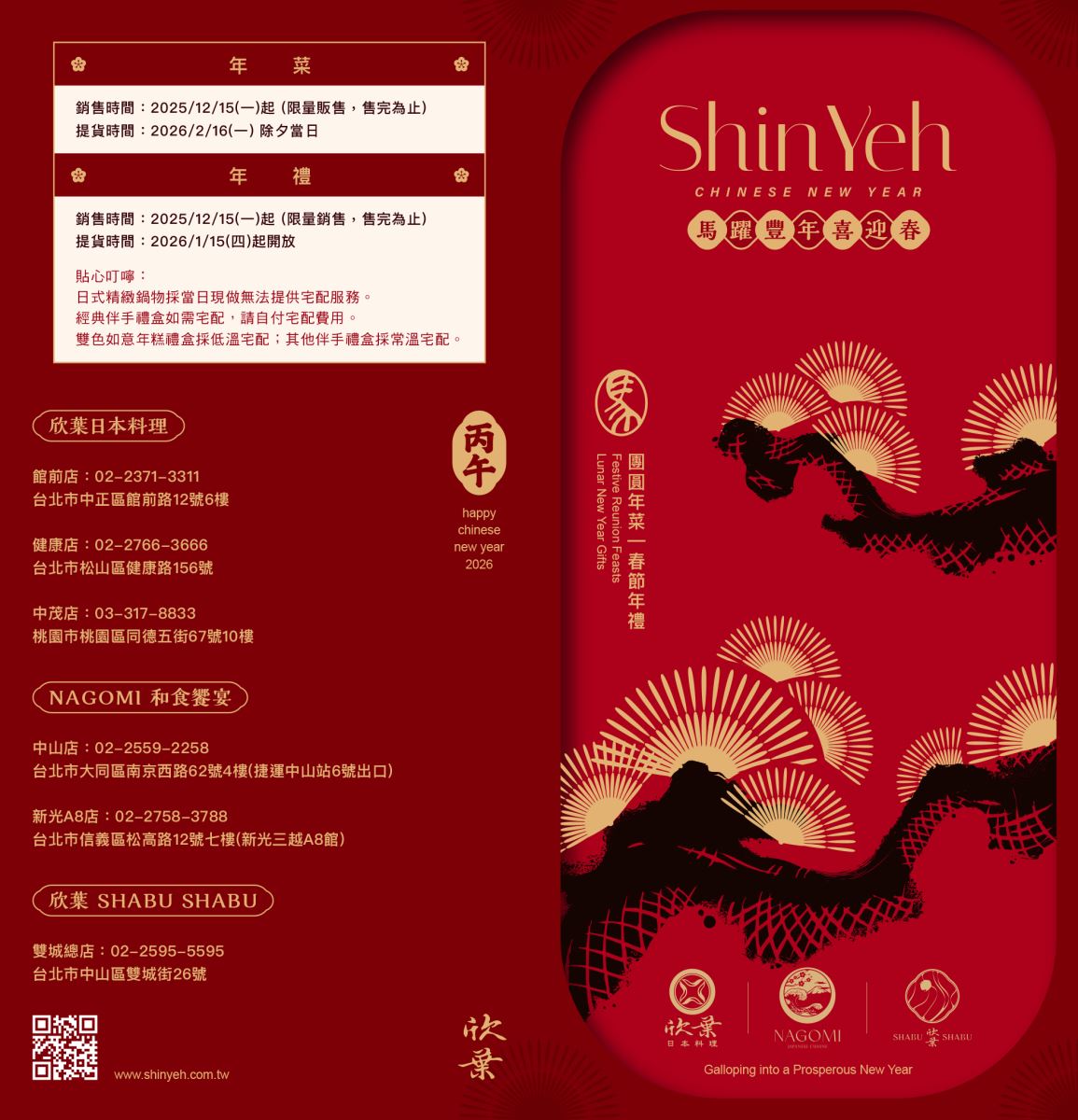 點我觀看欣葉最新優惠 - 【NAGOMI 和食饗宴】\2026農曆春節/訂位公告 NAGOMI 和食饗宴 2026農曆除夕暨春節訂位方式 2026年農曆除夕午餐/晚餐 ~ 初二午餐/晚餐 於2025/10/15(三) ..
