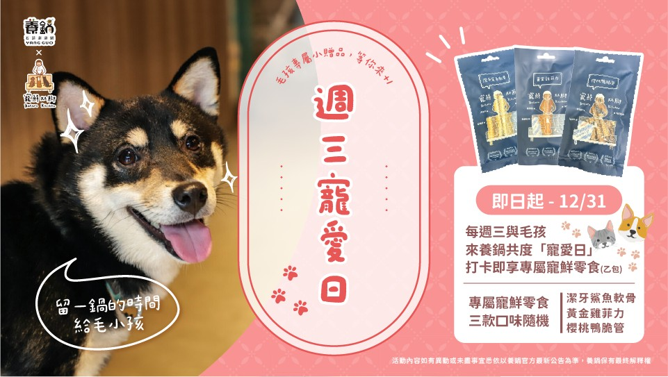 點我觀看養鍋優惠活動:寵物友善火鍋推薦|每週三來養鍋送寵鮮零食包!