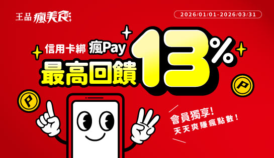 #王品集團 #王品瘋美食 #瘋Pay #瘋點數 #最高13%回饋 #1點抵1元 #會員好康 #限量額滿為止