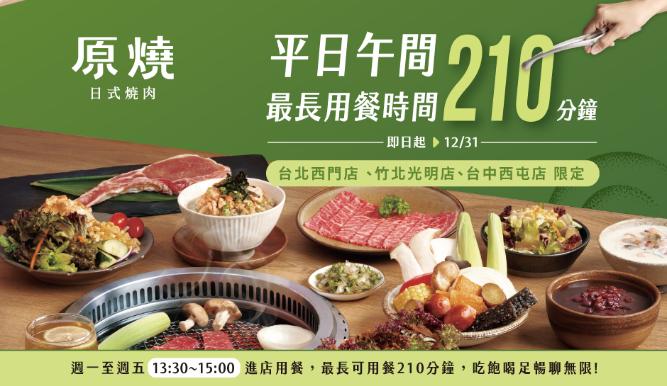 2.活動期間內平日週一至週五 13:30~15:00進店用餐,可用餐至17:00,最長210分鐘。