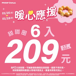 購買6入或8入甜甜圈可享209或259元甜甜價