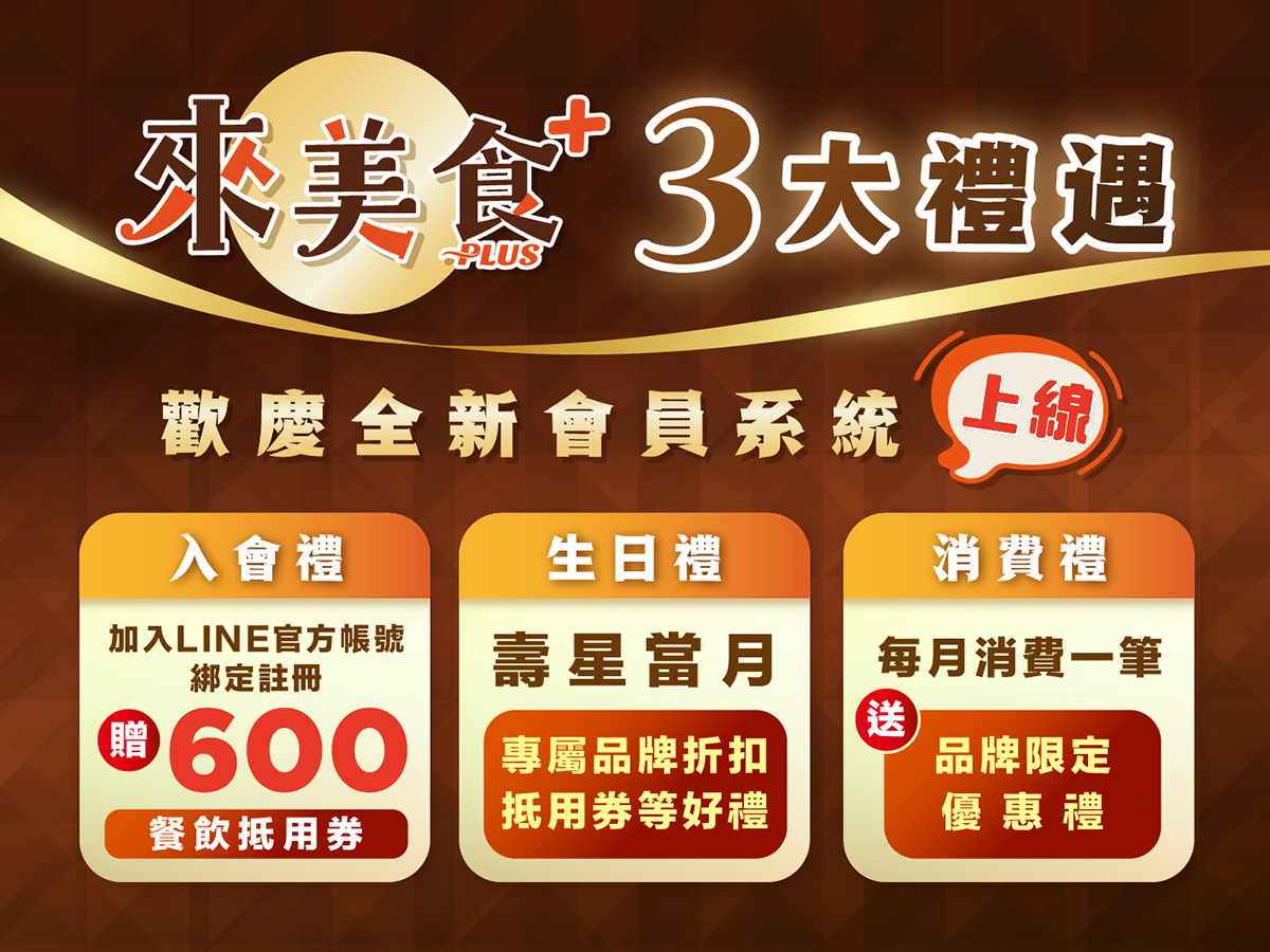 來美食PLUS 3大禮遇