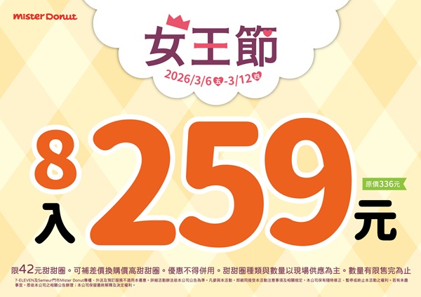 統一多拿滋 - 【限時優惠】寵愛女王節!推甜甜圈限時優惠 2026/03/05