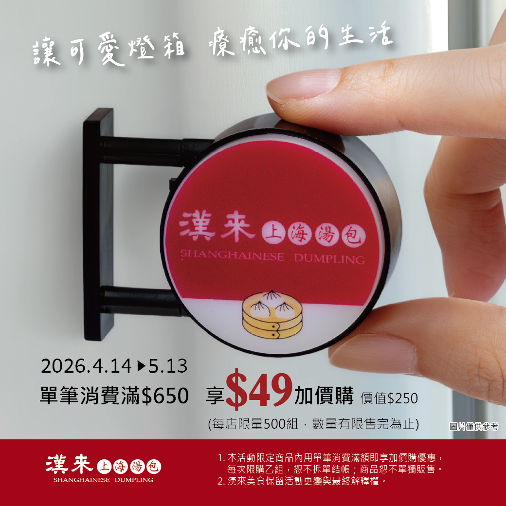 漢來優惠活動 - 《漢來上海湯包》台中漢神洲際店-開幕同慶活動:2026/4/14(二)-5/13(三) 雙重好禮 限時登場