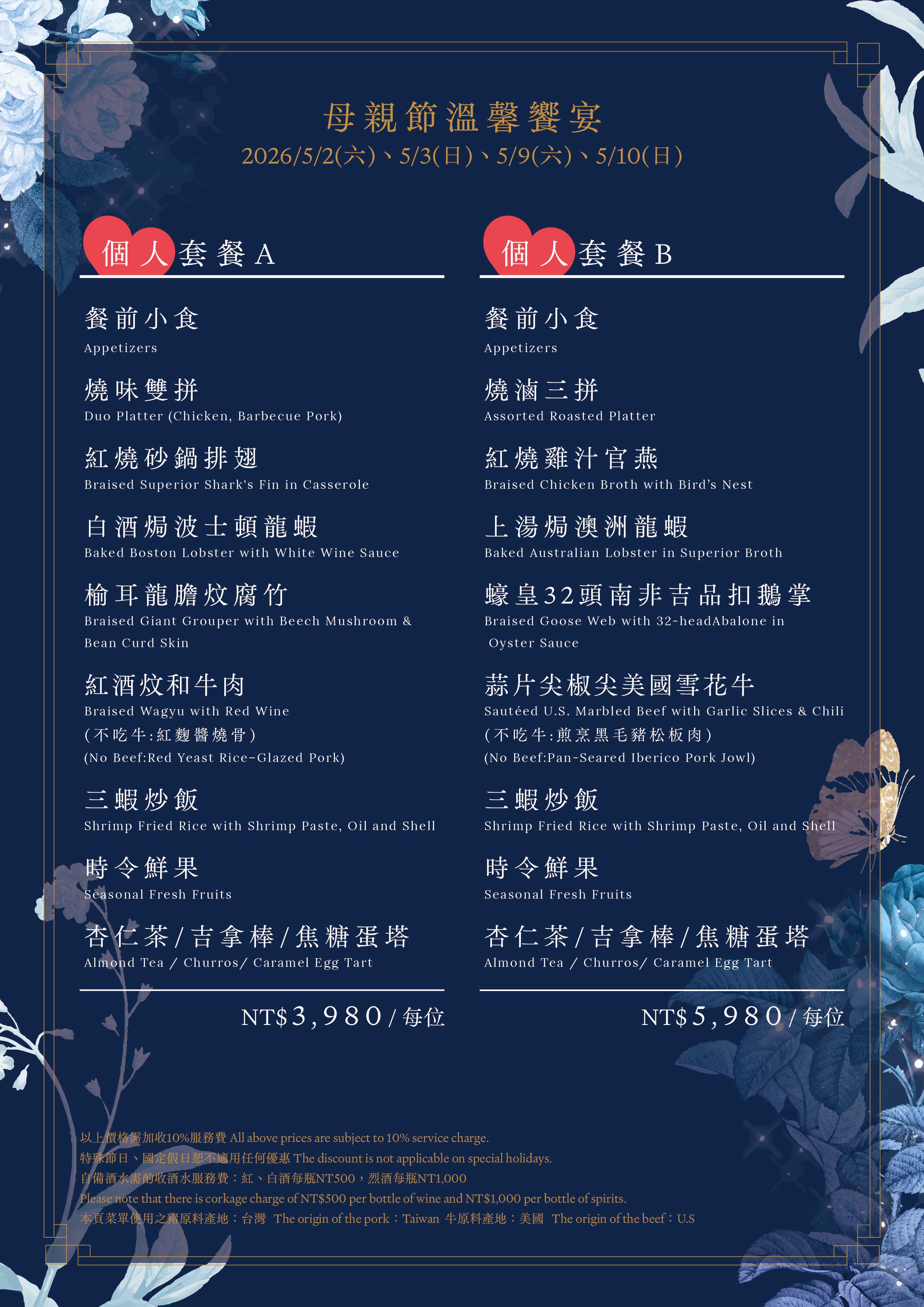 ❤️5/2(六)~5/3(日)、5/9(六)~5/10(日) :供應A、B兩種個人套餐