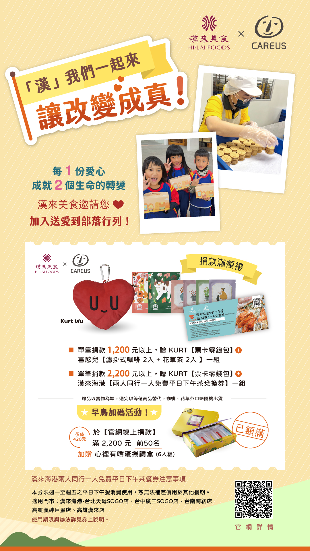 漢來美食邀請您,「漢」我們一起來,用一份捐款,啟動兩份生命改變!